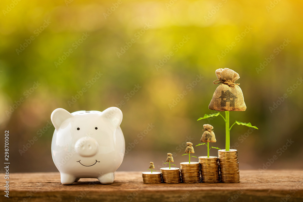 Stack Gold Coin And Tree Of Money Bag With A Home Symbol With Growing Interest Value